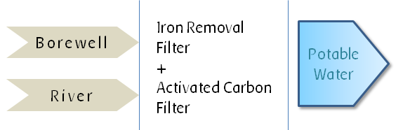 At first stage, raw water sourced from river or borewell, is treated to make it potable.