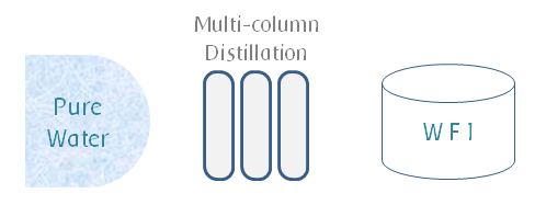Purified water is distilled to obtain WFI